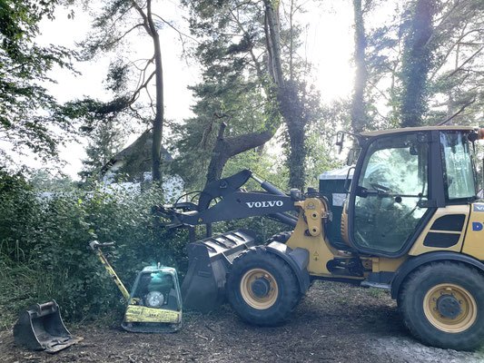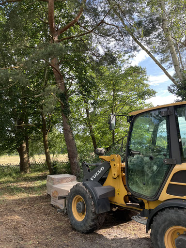 Und während die Zeit so dahin rennt, bleibt "mein" Grundstück fest in der Hand des Nachbarn, der neu bauen ließ. Aktuell wird sein Garten und die Einfahrt angelegt. Sämtliche Arbeiten dafür und die Lagerung der Materialien findet "bei mir" statt.