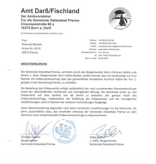 erwarte ich (un)geduldig meinen nächsten Termin im Amt Fischland-Darß-Zingst Anfang nächster Woche zur Feinabstimmung und danach hoffentlich erste Unterschriften.